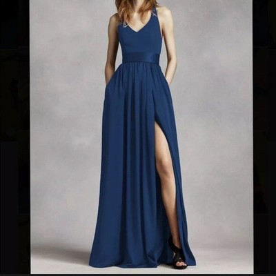 VERA WANG WHITE Dress Midnight Blue Long Chiffon Cascading Skirt Bridesmaid 8